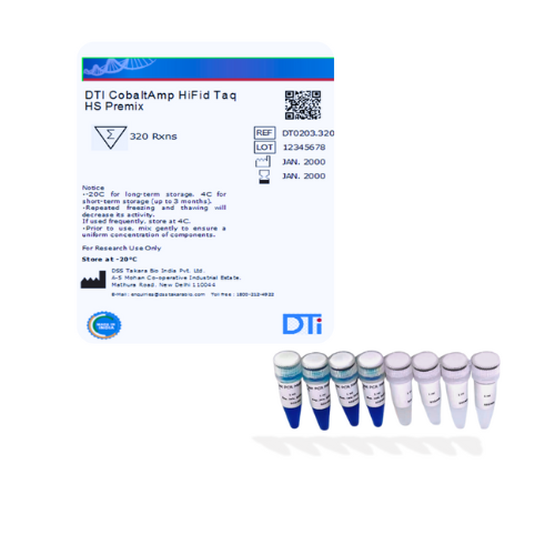 DTI CobaltAmp HiFid Taq HS Premix is a Fast PCR Master Mix and designed for streamlined PCR, and is, therefore, ideal for applications such as colony PCR. It contains a hot-start PCR enzyme, optimized buffer, dNTPs, along with a blue gel-loading dye and density reagent, in a convenient 2X premix format.